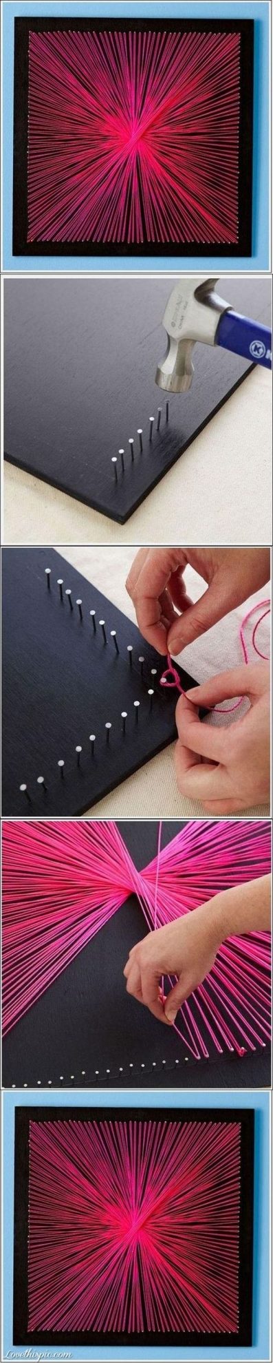 Muito giro! Adoro o quadro cor de rosa feito de lã.